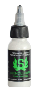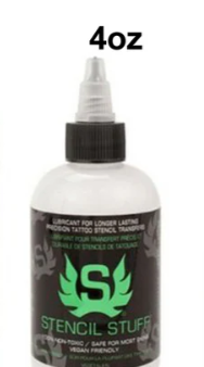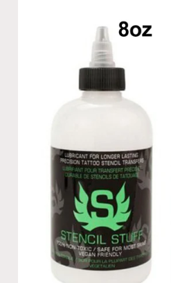 Back in the dinosaur ages, we went to Wollies and bought a Men's Speed Stick to use (and reuse) on clients as the trade secret solution to transferring stencils. We also used buckets of water and a sponge to wipe away ink and blood. But we know now that that's pretty icky. So, grab a bottle of this mysterious looking white goo because, well, its 21st century stuff and works a treat at keeping those stencils right where they belong.